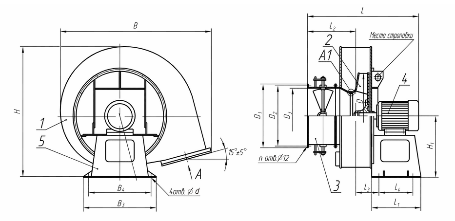 Рассмотрим устройство дымососа на примере изделия ДН (на схеме).