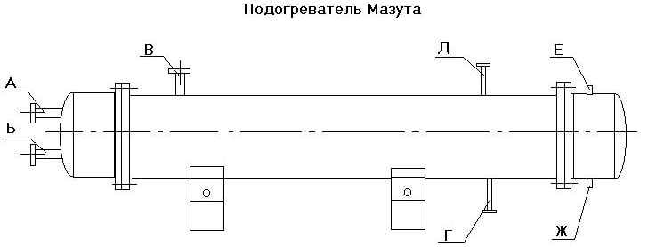На рис. ниже приведен чертеж типового подогревателя мазута: