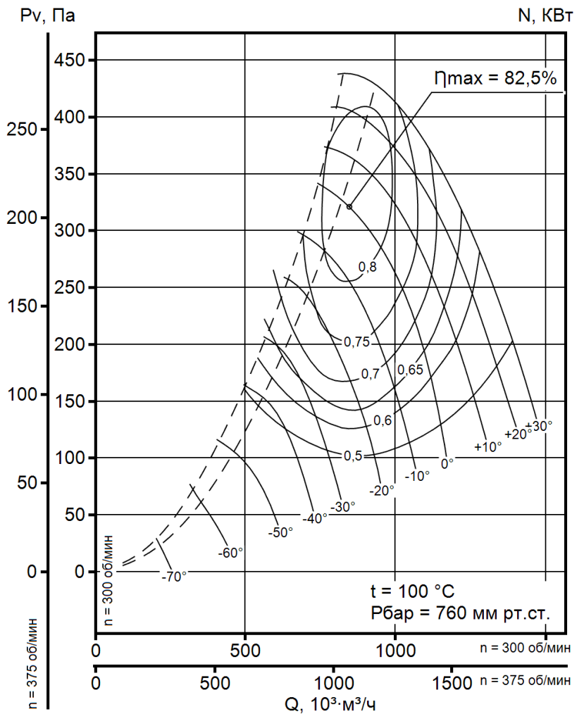 ПРИМЕЧАНИЕ: Акустические характеристики приведены для условий: Pбар=760 мм рт. ст., температура перемещаемой среды t=100°С.