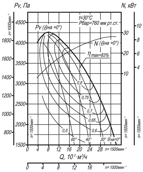 | ВДН-10 | 1000 | Нагнетание | 96 | 100 | 98 | 95 | 93 | 87 | 80 | 100 |