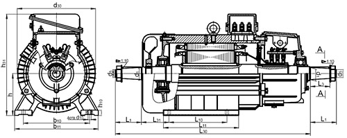 · статор с чугунным корпусом с оребрением и сердечником из стальных листов;