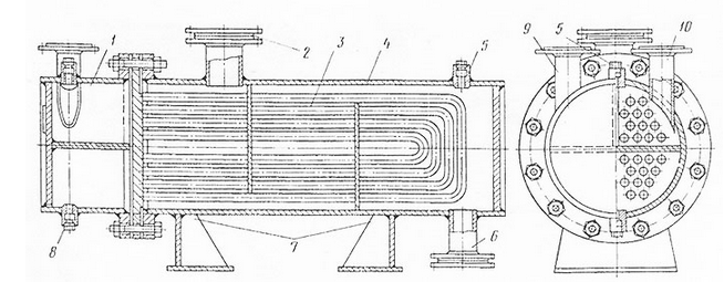 - и 9. патрубки ввода и вывода охлаждающей воды.