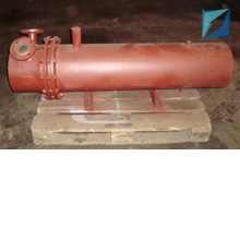 Горизонтально расположенный корпус имеет две опоры и представляет собой трубу с фланцем для соединения с передней водяной камерой, к другому торцу которой приварено днище. Также на корпусе размещены патрубки для входа пара, отвода конденсата, дренажа и спуска воздуха.