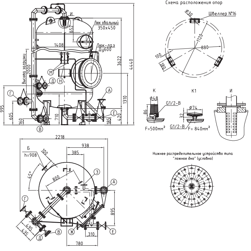 | Ж | Подвод промывочной воды | 80 | 1 |