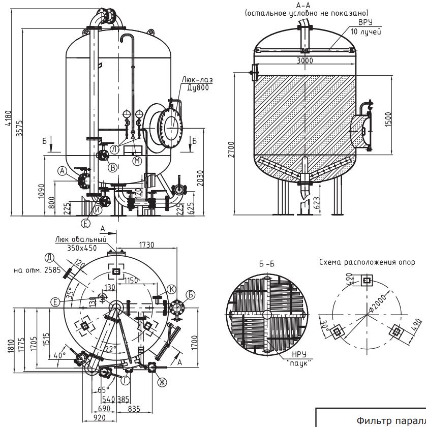 | А | Подвод исходной и промывочной воды | 250 | 1 |