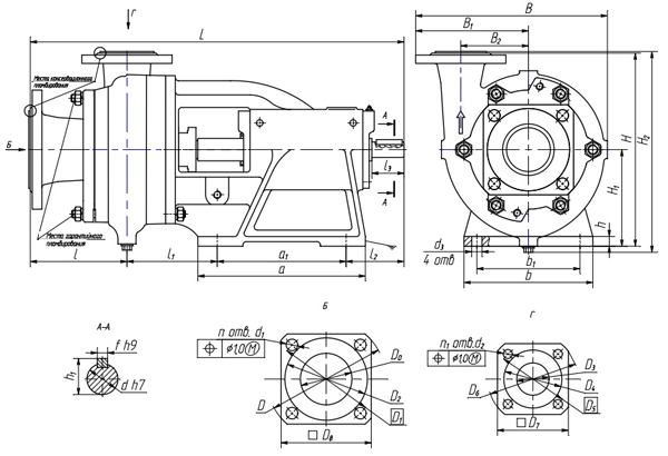 Корпус насоса – чугунная отливка, в которой есть входной и выходной патрубки, опорные лапы и спирально-кольцевой отвод. Рабочее колесо - центробежное, закрытого типа, одностороннего входа. Вращение ротора производится электродвигателем через соединительную муфту. Два радиально–упорных подшипника, установленных в кронштейне, служат опорами ротора. Если смотреть со стороны привода – вращение ротора по часовой стрелке.