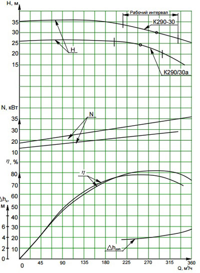 Консольный насос К 290/30а предназначен для перекачивания технической воды (кроме морской), а также других жидкостей сходных с водой по вязкости, плотности, химической активностью рН=6...9.