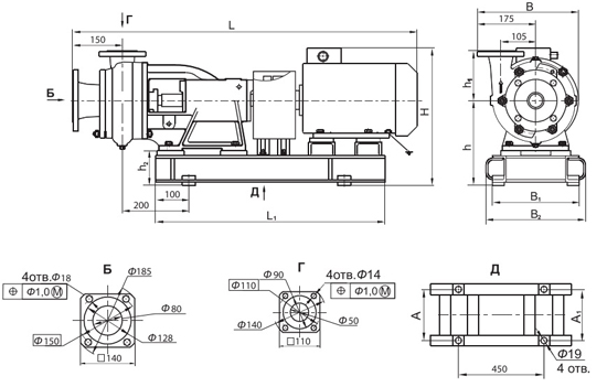 Корпус насоса – чугунная отливка, в которой есть входной и выходной патрубки, опорные лапы и спирально-кольцевой отвод. Рабочее колесо - центробежное, закрытого типа, одностороннего входа. Вращение ротора производится электродвигателем через соединительную муфту. Два радиально–упорных подшипника, установленных в кронштейне, служат опорами ротора. Если смотреть со стороны привода – вращение ротора по часовой стрелке.