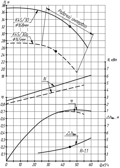 Консольный насос К 45/30 предназначен для перекачивания технической воды (кроме морской), а также других жидкостей сходных с водой по вязкости, плотности, химической активностью рН=6...9.
