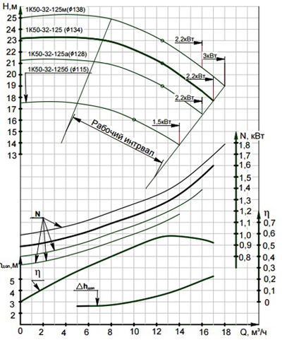 Консольный насос К 50-32-125б предназначен для перекачивания технической воды (кроме морской), а также других жидкостей сходных с водой по вязкости, плотности, химической активностью рН=6...9.