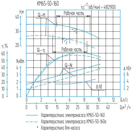 Предназначение насоса КМ 65-50-160 - перекачивание в стационарных условиях технической воды (кроме морской) c рН=6 – 9, а также других жидкостей, сходных с водой по плотности и химической активности температурой от -10 до + 85 ºС. Состав жидкости может содержать механические примеси не более 0,1% по объему и частицы размером не более 0,2 мм. Нет необходимости центровки агрегата и как следствие более низкие уровни вибрации и шума.