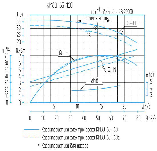 Предназначение насоса КМ 80-65-160а - перекачивание в стационарных условиях технической воды (кроме морской) c рН=6 – 9, а также других жидкостей, сходных с водой по плотности и химической активности температурой от -10 до + 85 ºС. Состав жидкости может содержать механические примеси не более 0,1% по объему и частицы размером не более 0,2 мм. Нет необходимости центровки агрегата и как следствие более низкие уровни вибрации и шума.