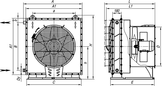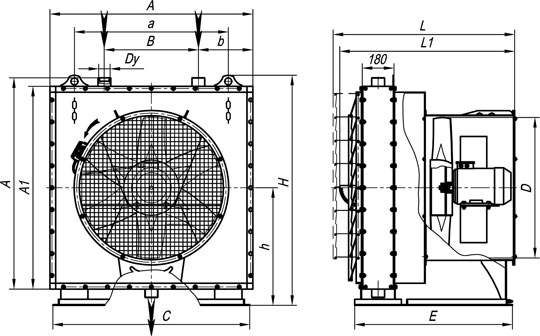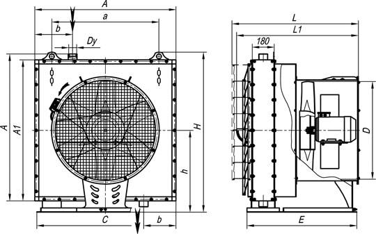 Габаритные размеры агрегатов воздушно-отопительных АO 2-20 на базе калориферов типа КСк