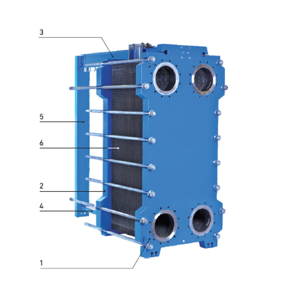 6. Набор пластин с прокладками (число, размер и профиль пластин зависят от физико-химических свойств рабочих сред, температурной программы и показателей допустимых потерь напора).