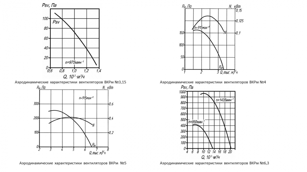 Основные части конструкции ВКРМ №4 исп-1 — рама, двигатель, рабочее колесо, диффузор, защитное ограждение, колпак. Рабочее колесо имеет 13 (№3,15 – 8) или 12 (№10 – 12,5) загнутых назад лопаток. Исполнение 1 — рабочее колесо на валу электродвигателя.