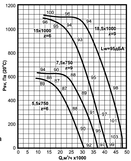 Основные части вентилятора: рама, короб, диффузор, два кармана электродвигатель и рабочее колесо с 6 или 9 лопатками, загнутыми назад. Номер типоразмера соответствует диаметру рабочего колеса в дециметрах.