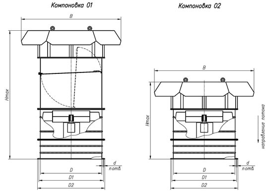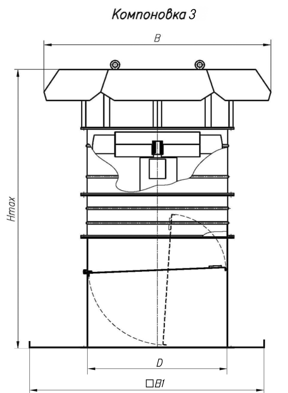 | № вентилятора | B, мм | D, мм | B1, мм | Нmax, мм |