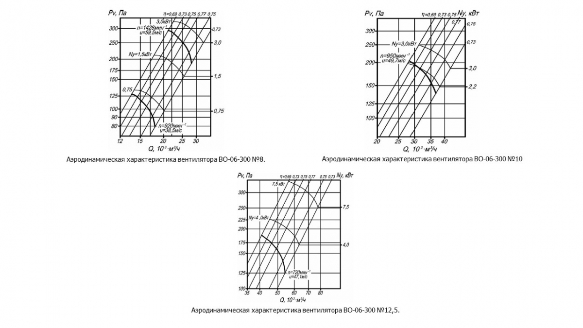 Вентилятор ВО 06-300 №12,5 общего назначения, изготавливается из углеродистой стали. При диаметре рабочего колеса 315 мм и электродвигателе мощностью 180 Вт обеспечивает производительность до 2800 кубометров в час. ВО 06-300 №12,5 может быть изготовлен в одном из трёх конструктивных исполнений по способу перемещения воздушной массы: