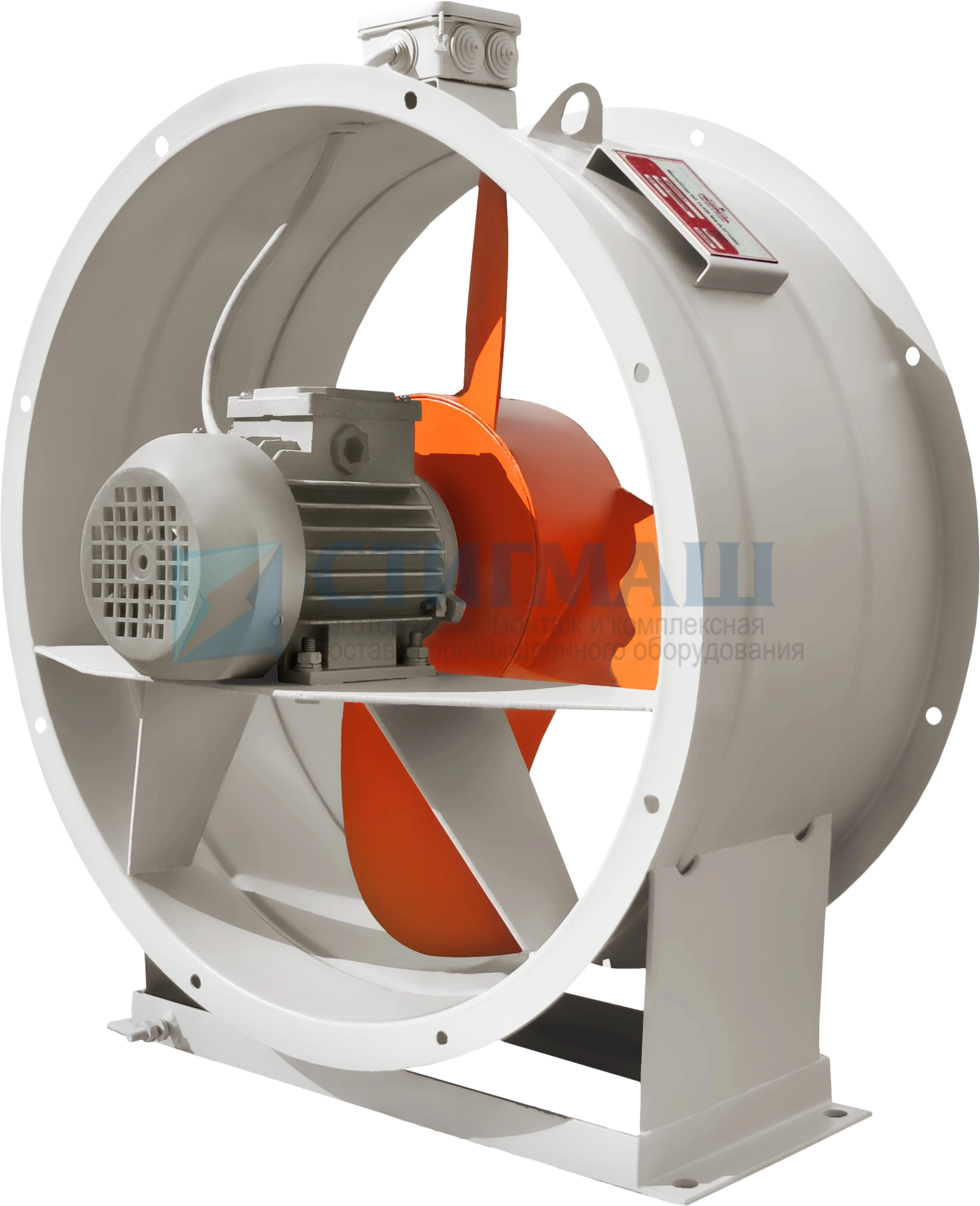 Конструкция вентилятора состоит из электродвигателя, рабочего колеса, корпуса с фланцами, рамы для монтажа на фундамент.