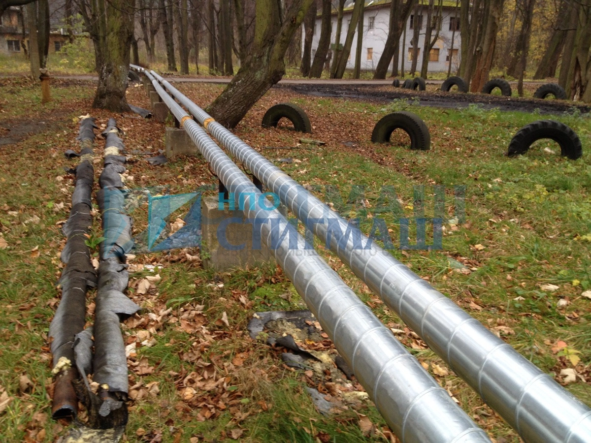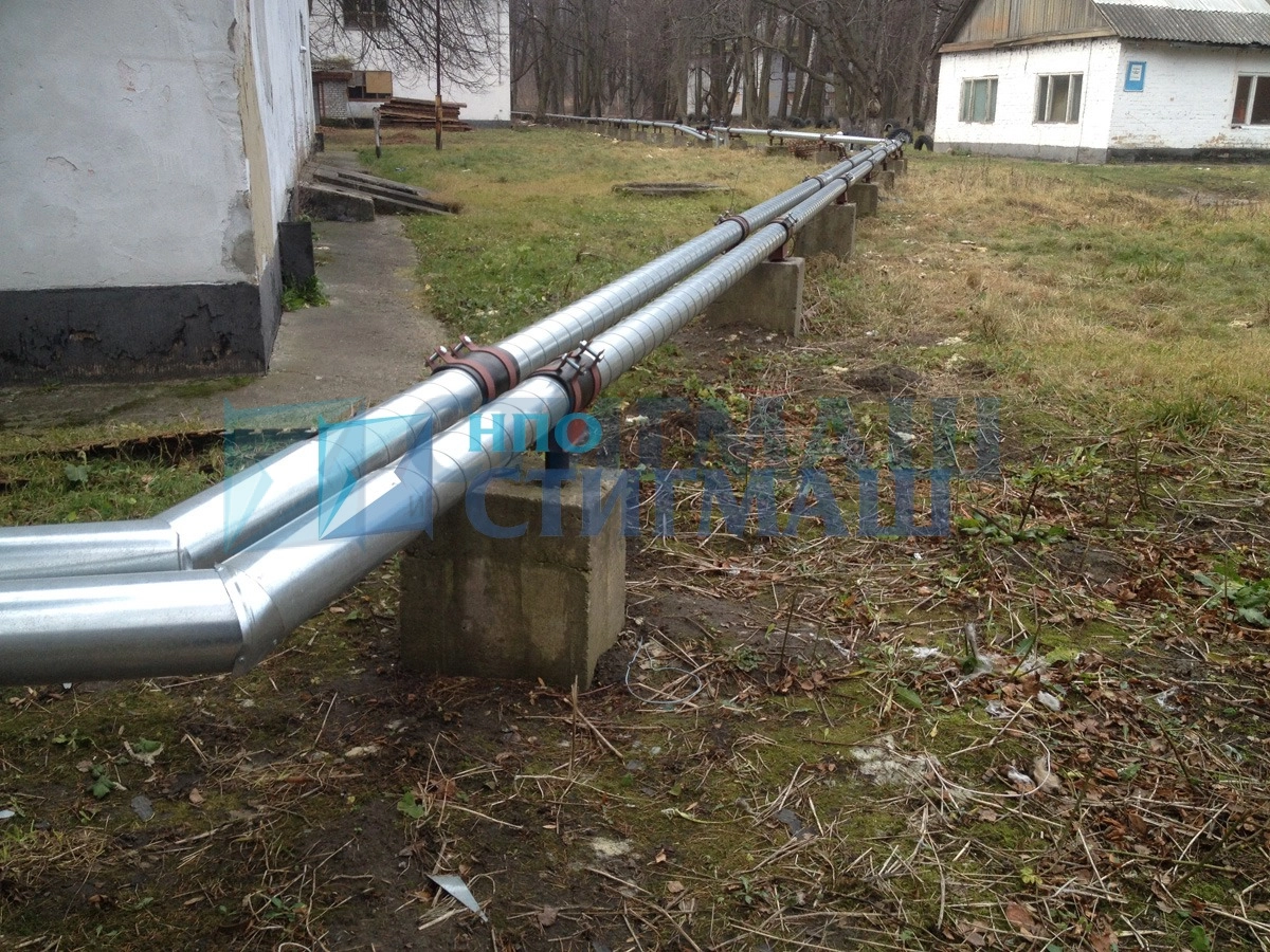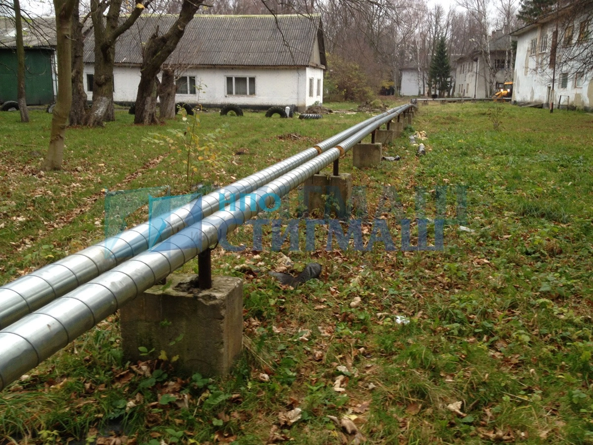 Для прокладки нового трубопровода были использованы имеющиеся железобетонные опоры с закладными деталями, к которым были приварены новые крепёжные кронштейны с хомутами.