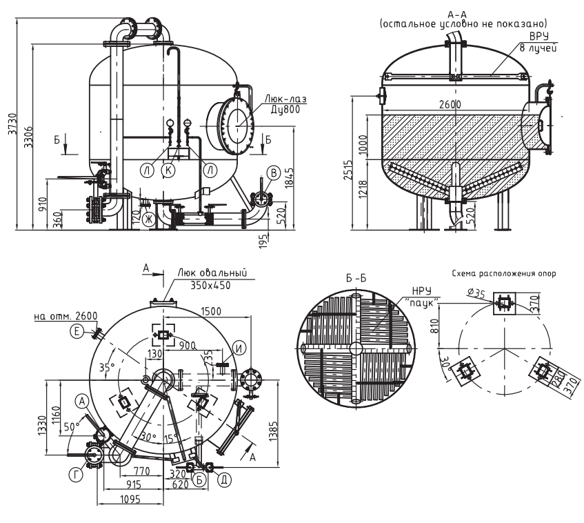 | Г | Отвод промывочной воды | 1 | 200 | 1,0 | 22 | 8 | 295 | -- |
