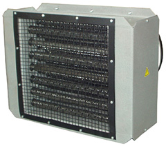 Воздух, нагнетаемый в калорифер, проходит через секции с ТЭНами. Пластины оребрения быстро нагревают воздушный поток, подаваемый затем под давлением в обслуживаемое помещение осевым вентилятором. Мощность потока обеспечивает быстрое доведение температуры помещения до нужного уровня.