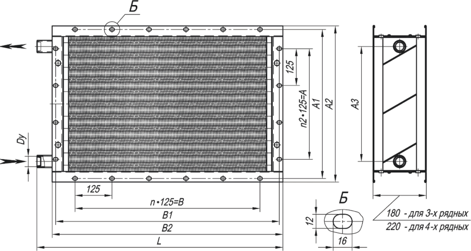 | А | А1±3 | А2 | А3 | B | B1±3 | B2 | L | Dу | n | n2 | V, m3 |