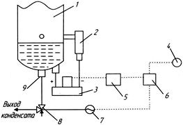 На рисунке схематически представлено, каким образом регулируется уровень конденсата: