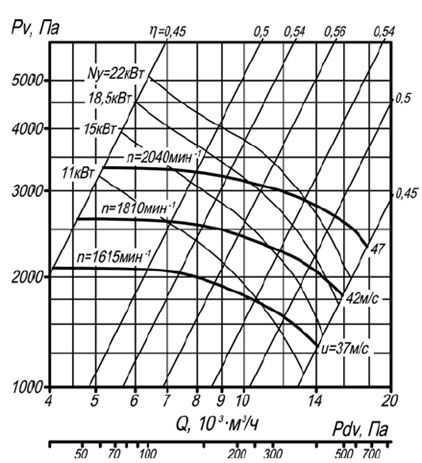 На границах рабочего участка аэродинамические уровни звуковой мощности на 3дБ выше уровня звуковой мощности, соответствующего номинальному режиму работы вентилятора.
