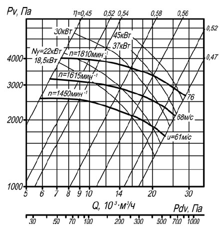 На границах рабочего участка аэродинамические уровни звуковой мощности на 3дБ выше уровня звуковой мощности, соответствующего номинальному режиму работы вентилятора.