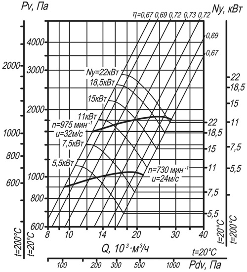 | Типоразмер | Мощность, кВт | Произ-ть 10³х м³/ч | Полное давление. Да | ДО | Кол-во | ВР | Кол-во | ||||