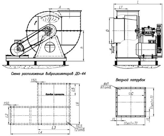 Присоединительные размеры вентиляторов ВР 9-55 исп-5