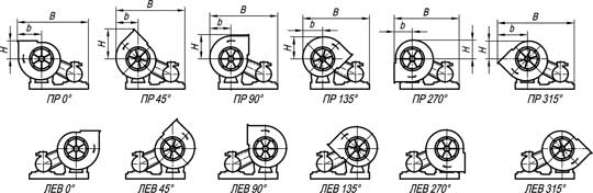Положения корпуса вентилятора ВР 9-55 исп-5. По спецзаказу возможно изготовление положения 180°